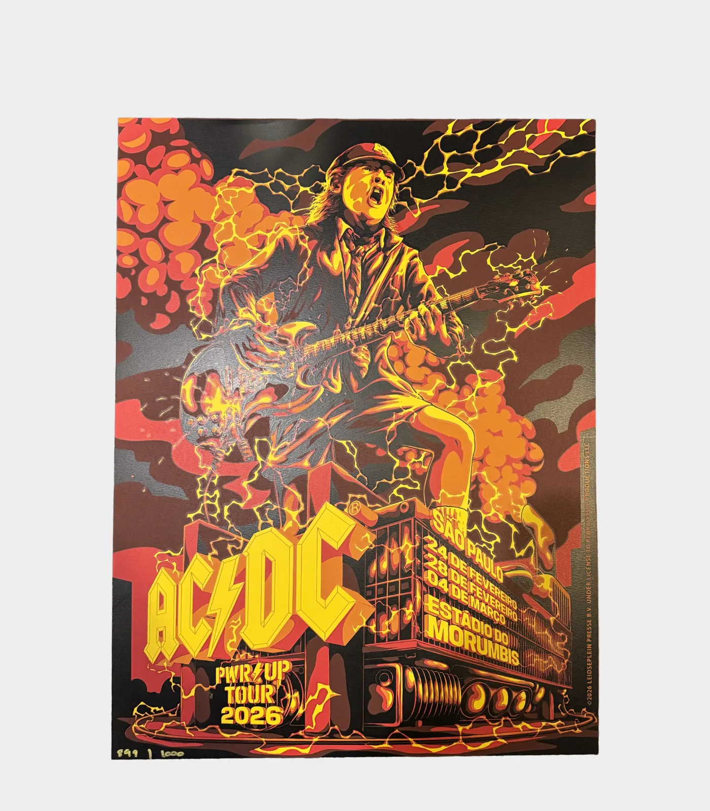 Litografia A2 em serigrafia do AC/DC, com acabamento artístico e impressão de alta qualidade. Uma peça exclusiva que valoriza cada detalhe e traduz a essência do rock.