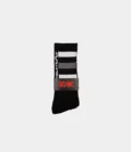 Par de meias pretas com detalhes em branco, confeccionadas em tecido confortável e resistente. Ideal para expressar atitude e estilo em qualquer ocasião.