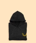 Blusa de moletom canguru na cor preta, confeccionada em malha 50% algodão e 50% poliéster, unindo maciez e durabilidade. Possui bolso frontal e estampa em serigrafia, garantindo um acabamento resistente e de alta qualidade.
