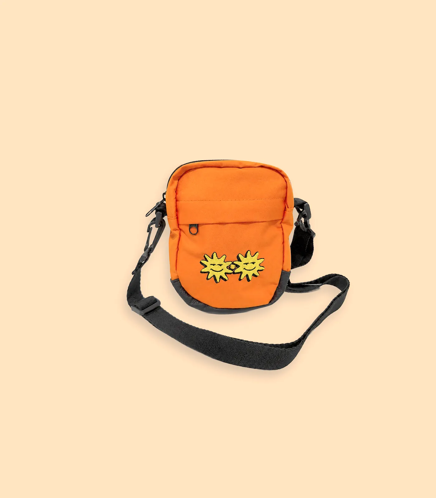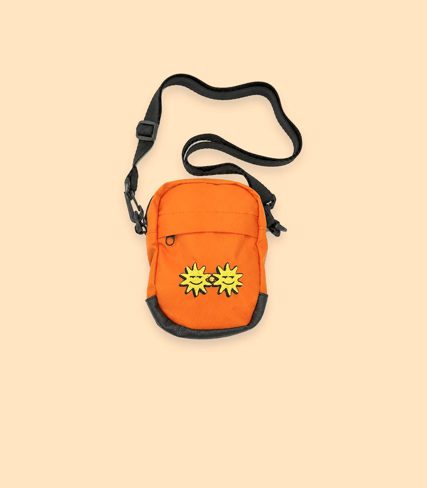 Shoulder bag na cor laranja com alça confortável, confeccionada em 100% algodão para um acabamento resistente e sustentável. O destaque fica por conta dos dois sóis em bordado, que adicionam textura, durabilidade e um visual exclusivo.