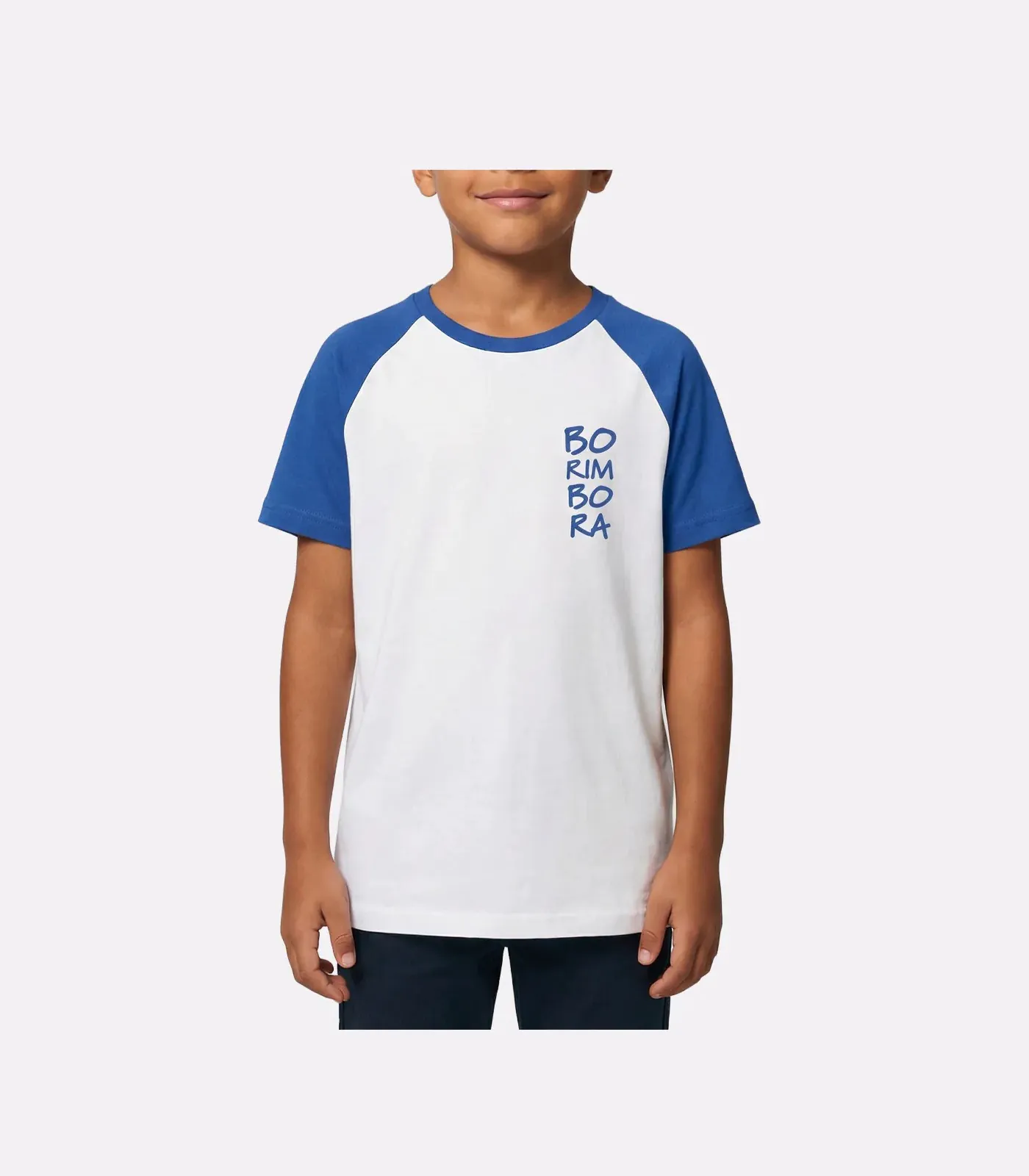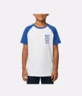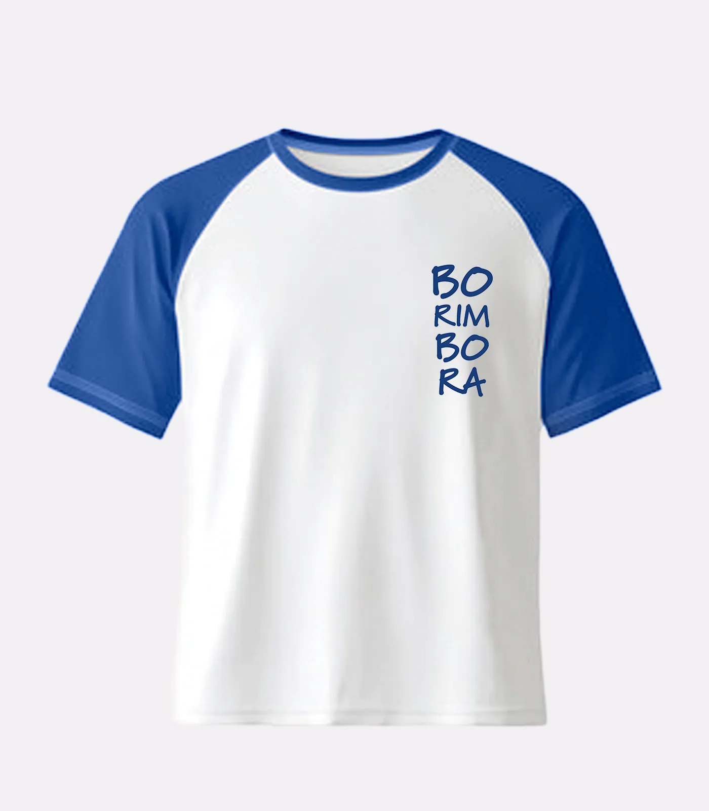 Camiseta branca com mangas em azul, confeccionado em malha 100% algodão, proporcionando conforto e caimento impecável. Possui modelagem raglan, gola careca e mangas curtas. A estampa em serigrafia garante durabilidade e acabamento premium.