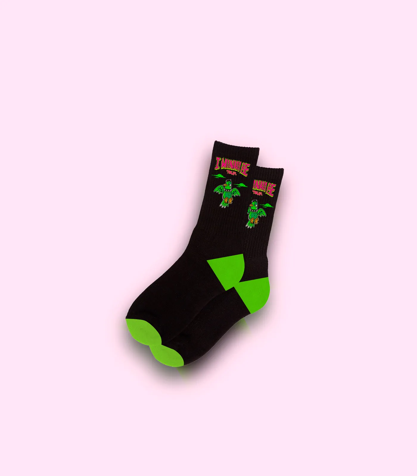 Par de meias pretas com detalhes em verde neon no calcanhar e na ponta dos pés, confeccionadas em tecido confortável e resistente. Ideal para expressar atitude e estilo em qualquer ocasião.