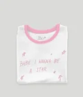 Manga curta na cor branca, gola e punhos na cor rosa, malha 100% algodão com estampa em serigrafia.